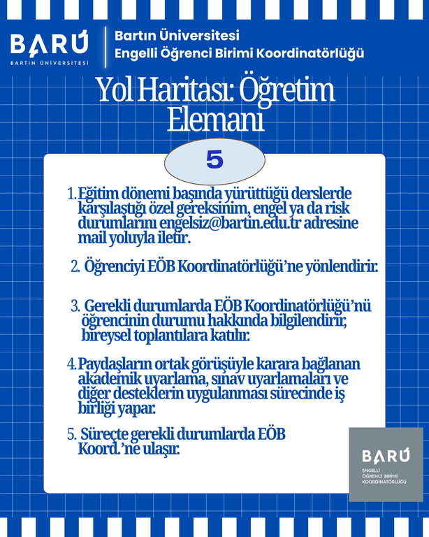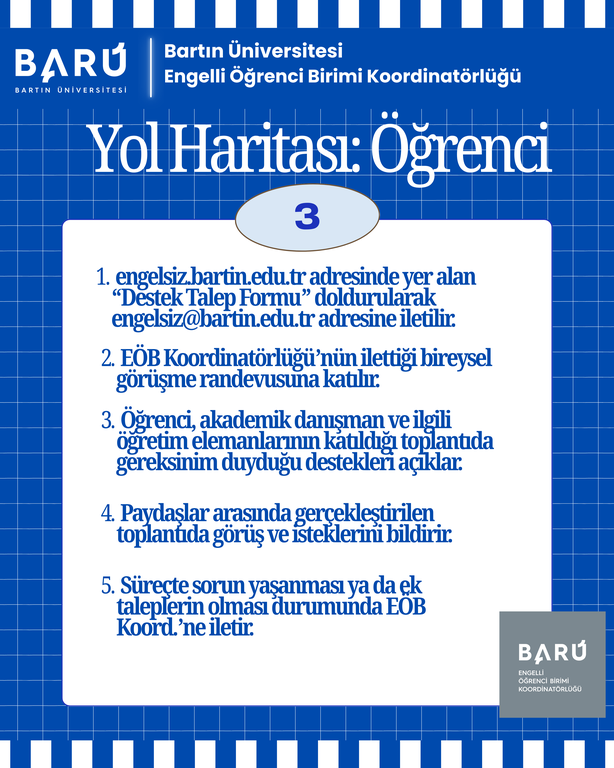 Özel gereksinimli öğrencilerimiz için daha kapsayıcı akademik süreçler ve kampüs yaşamına katılımlarını desteklemek için süreç haritaları yayınlandı.