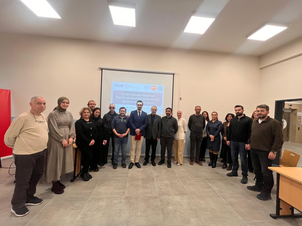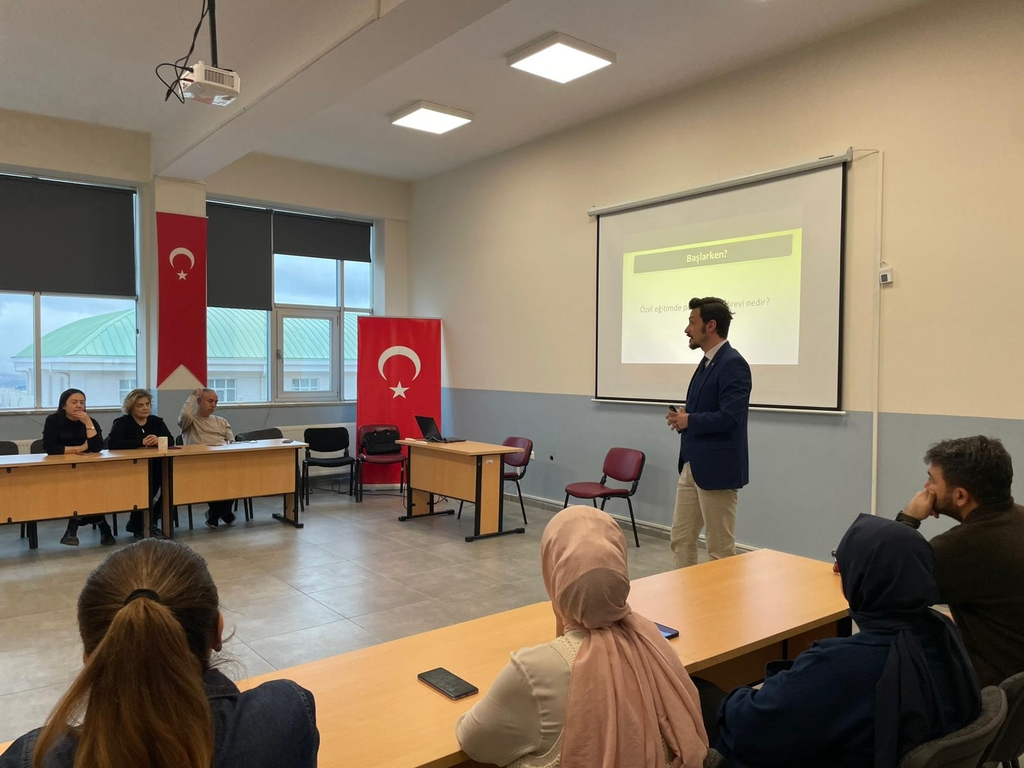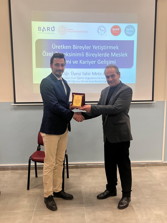 Engelli Öğrenci Birimi Koordinatörümüz Dr. Öğr. Üyesi Tahir Mete ARTAR, Ankara Keçiören Rehberlik ve Araştırma Merkezi'nde "Üretken Bireyler Yetiştirmek: Özel Gereksinimli Bireyler İçin Mesleki Eğitim ve Kariyer Geliştirme Süreci" başlıklı seminerde konuşmacı olarak yer aldı. 30 personelin katıldığı seminerde özel gereksinimli bireylerin bağımsız yetişkinliğe geçişlerinde göz önünde bulundurulması gereken uygulamalar, bilimsel dayanaklı kariyer geliştirme ve mesleki eğitim uygulamaları ile geçmişte hayata geçirilen model uygulamalara yönelik bilgilendirme yapıldı. Seminer soru-yanıt oturumu ile sonlandırıldı. Türkiye'nin en fazla bireye hizmet sunan Rehberlik ve Araştırma Merkezleri arasında yer alan Keçiören RAM seminerinin özel gereksinimli bireyler ve ailelerine yönelik rehberlik ve danışmanlık süreçlerinde önemli katkısı olacağı vurgulandı.
